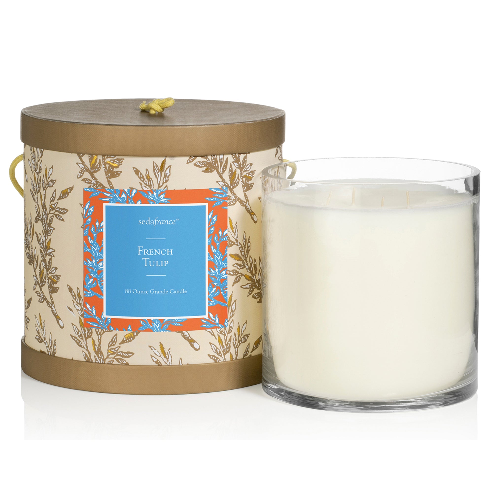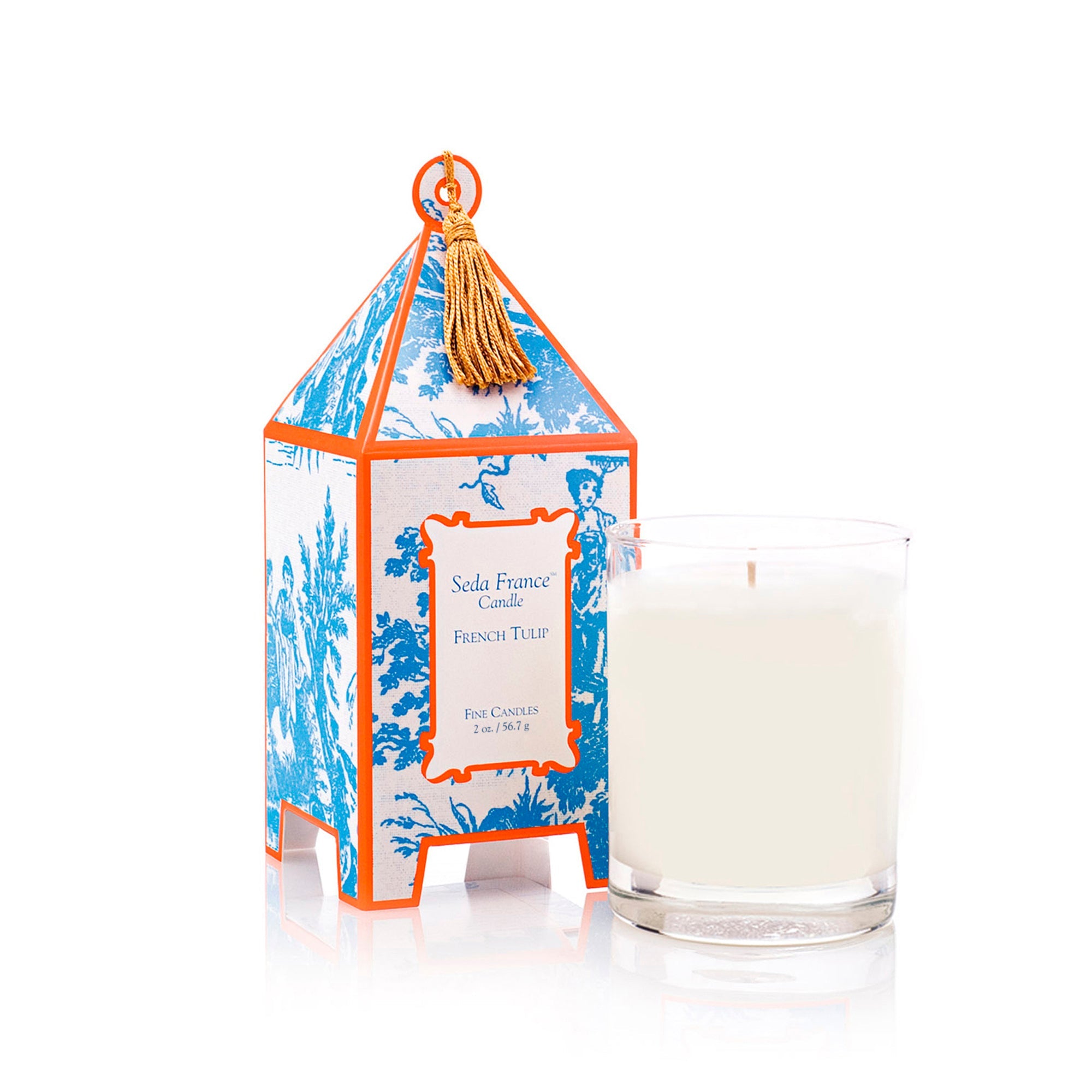 Seda France's French Tulip candle will transport you to Paris in the spring and open-air flower markets. This green fresh blend includes jasmine, rose, lemon, clove, sage, and rosewood for a complex green note. Magnifique! This is the original signature Seda France candle. Seda France's Classic Toile fragrances are available in their signature "no wrapping paper needed" packaging, with a glass votive inside.