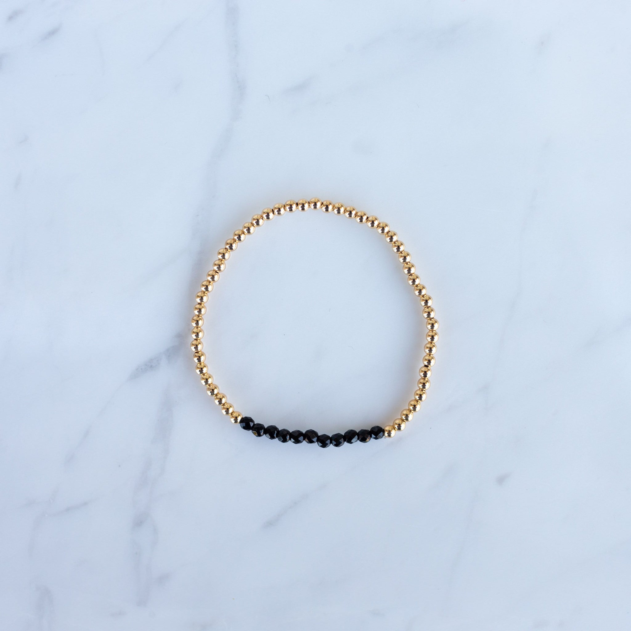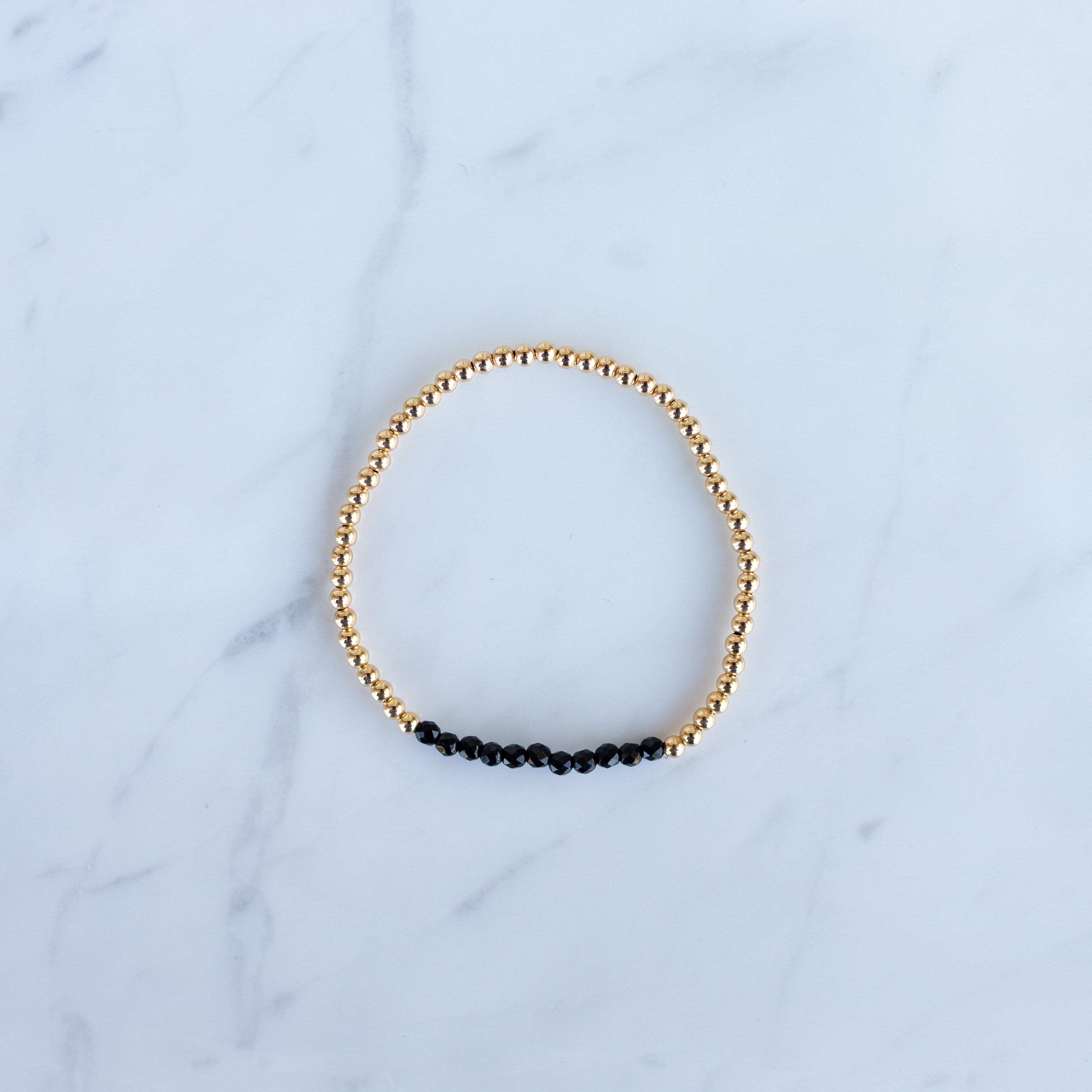 3mm Yellow Gold Filled & Black Onyx Beaded Bracelet