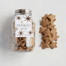Our festive stars are handmade, delicate crisp, thin butter cookies that have a mix of Holiday Time Spices. Packaged in a glass jar with a copper lid and a gift tag.