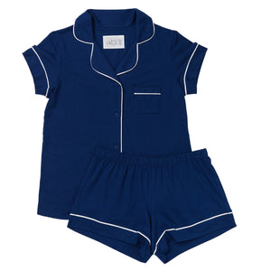 Marine Blue Pima Knit Cotton Pajama Short Set